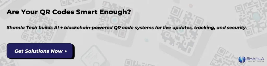 Shamla Tech, an AI development company, builds dynamic QR code systems with scan tracking, smart redirect rules, chain-based audit logs, and user-level content changes. Our tools give full control, real-time updates, and chain-verified data paths across industries.