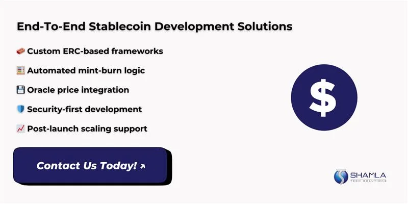 Shamla Tech is a leading stablecoin development company offering expert stablecoin developers, secure audits, and end-to-end delivery. Their proven methods, technical depth, and support make them a reliable partner for Ethereum stablecoin development and enterprise-grade token launches.