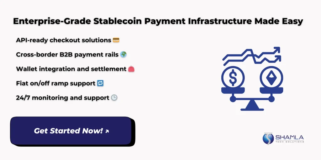 Shamla Tech is a top stablecoin development company, guiding clients on how to create a stablecoin with robust collateral and smart‑contract frameworks. Our stablecoin development solutions include protocol audits, reserve tooling, and cross‑chain integration. Trusted by enterprises, we deliver secure, compliant coin launches with governance, audit logs, and scalable architecture.