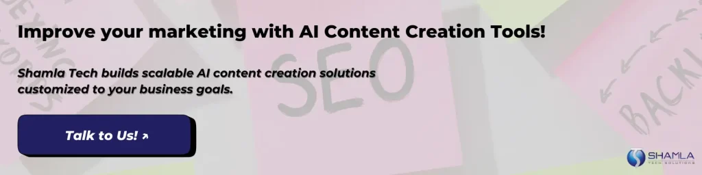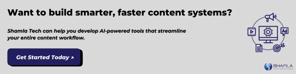 Shamla Tech is an AI development company building AI content creation tools for writing systems, using NLP models, REST APIs, and automated pipelines. We set up custom workflows for content generation, editing, and publishing. Our solutions scale to handle high content loads and track performance metrics, boosting engagement rates. Multiple brands improved campaign reach and conversion rates.