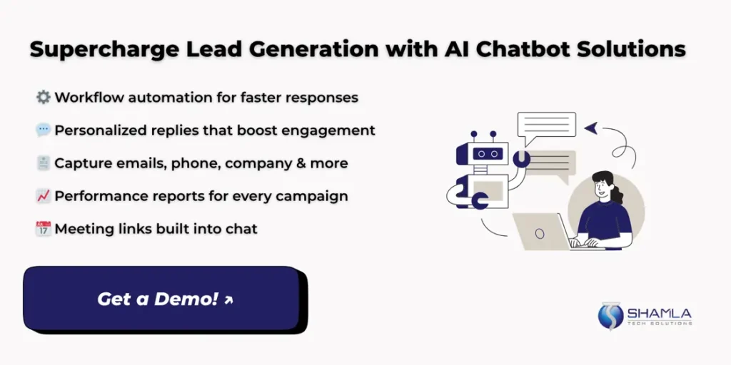 If you’re serious about generating leads with AI chatbots, it’s time to talk to Shamla Tech.